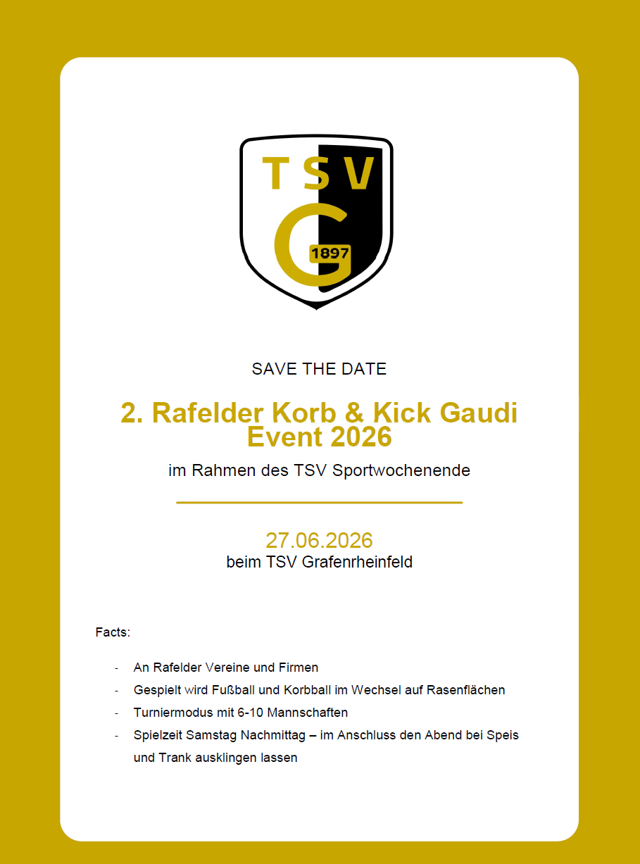 Freitag 17.04.2026 19:30                      TSV Mitgliederversammlung mit Neuwahlen